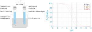 离子选择电极是一种基于电化学原理的传感器,通过测量溶液中特定离子的活度(浓度)引起的电势变化来实现定量分析,当电极浸入溶液中,敏感膜两侧(膜内溶液与待测溶液)的目标离子活度差会产生离子交换或扩散,形成膜电位。膜电位与目标离子活度遵循能斯特方程,使用高阻抗电路测量膜电位,可计算得到离子浓度。